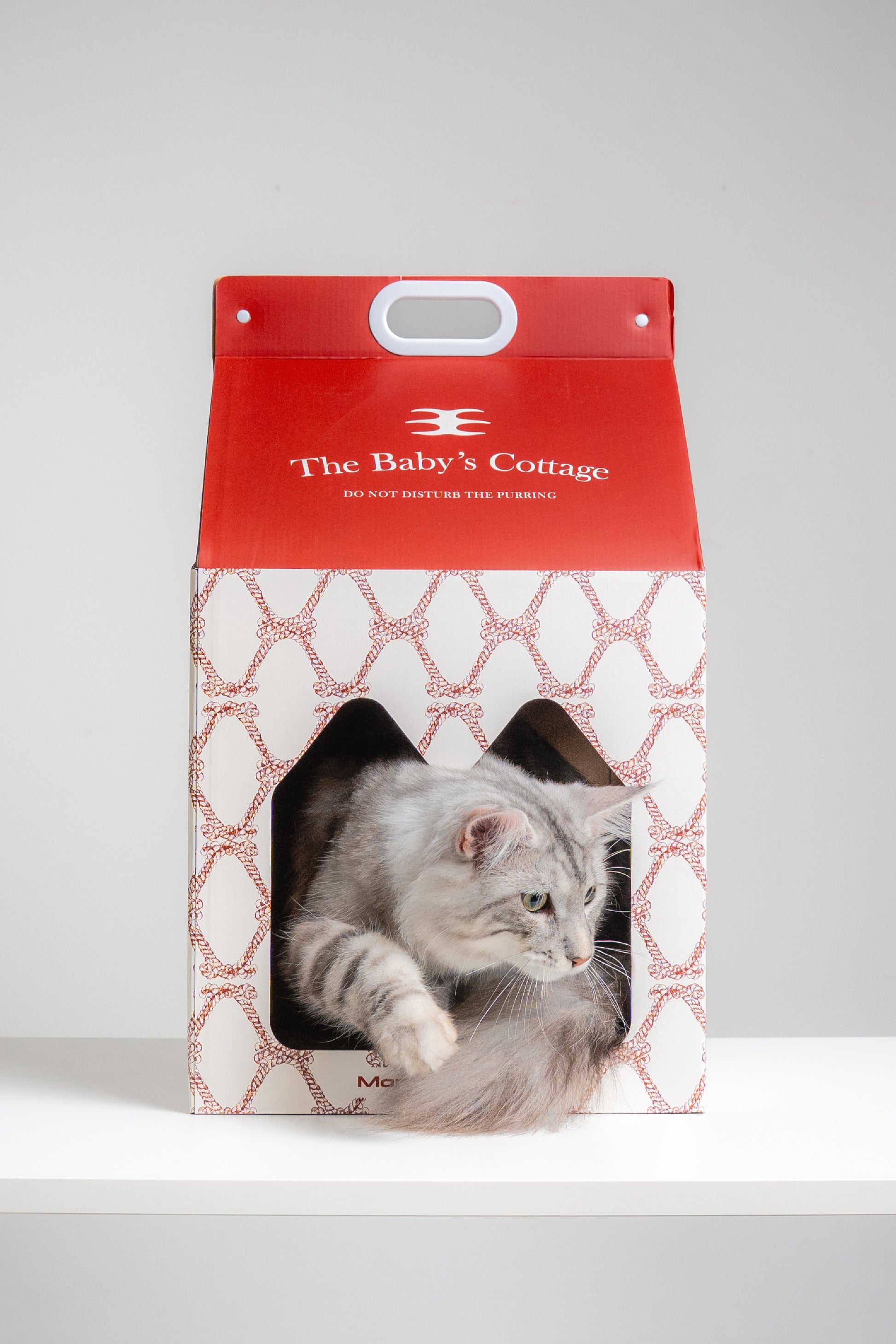 A cozy, foldable paper house designed in our signature brand prints – featuring a built-in scratching board and little peep- hole cut-outs.
