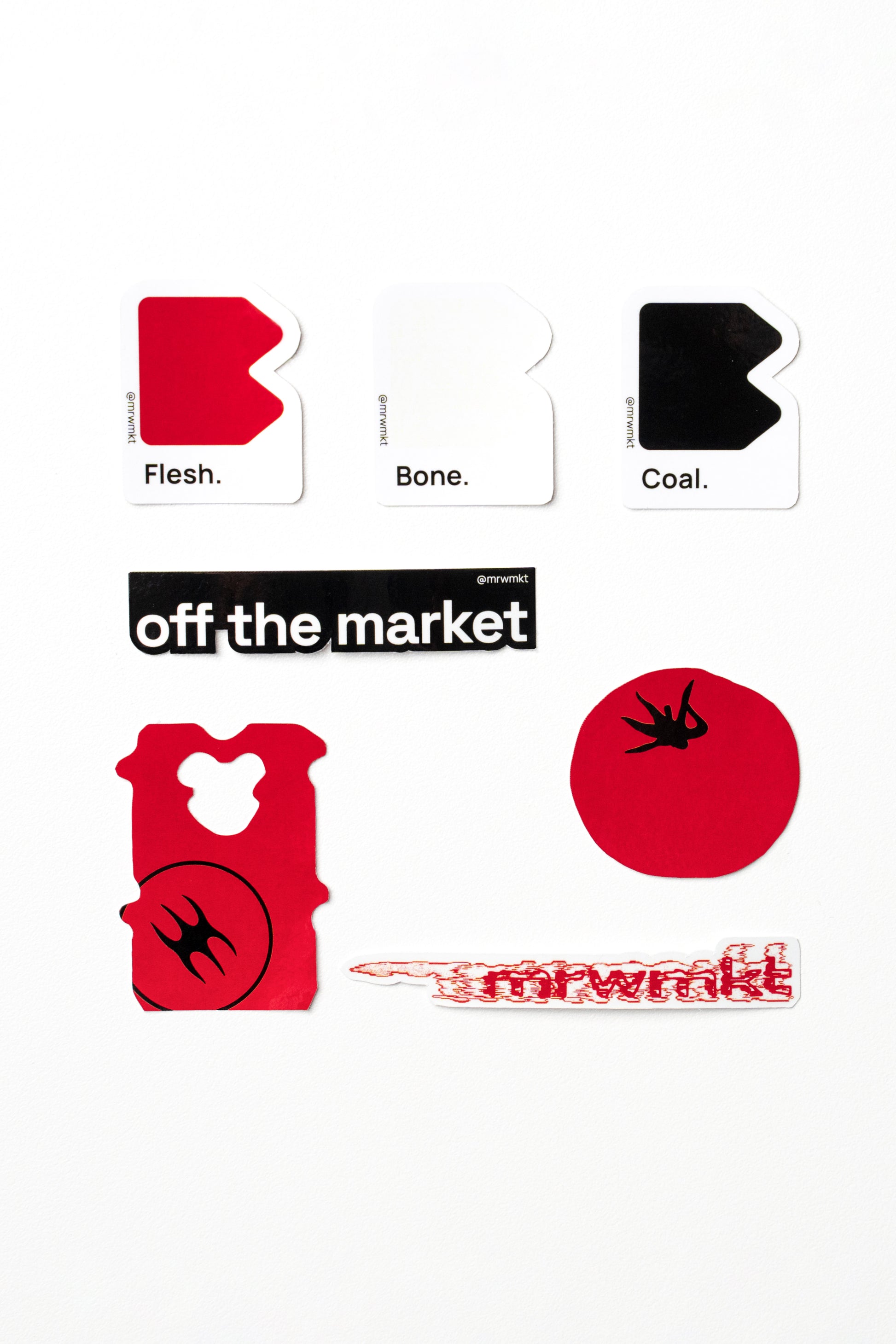 Enoki (white) featuring a flying sewn red tag + a minimally embroidered red cuff line.