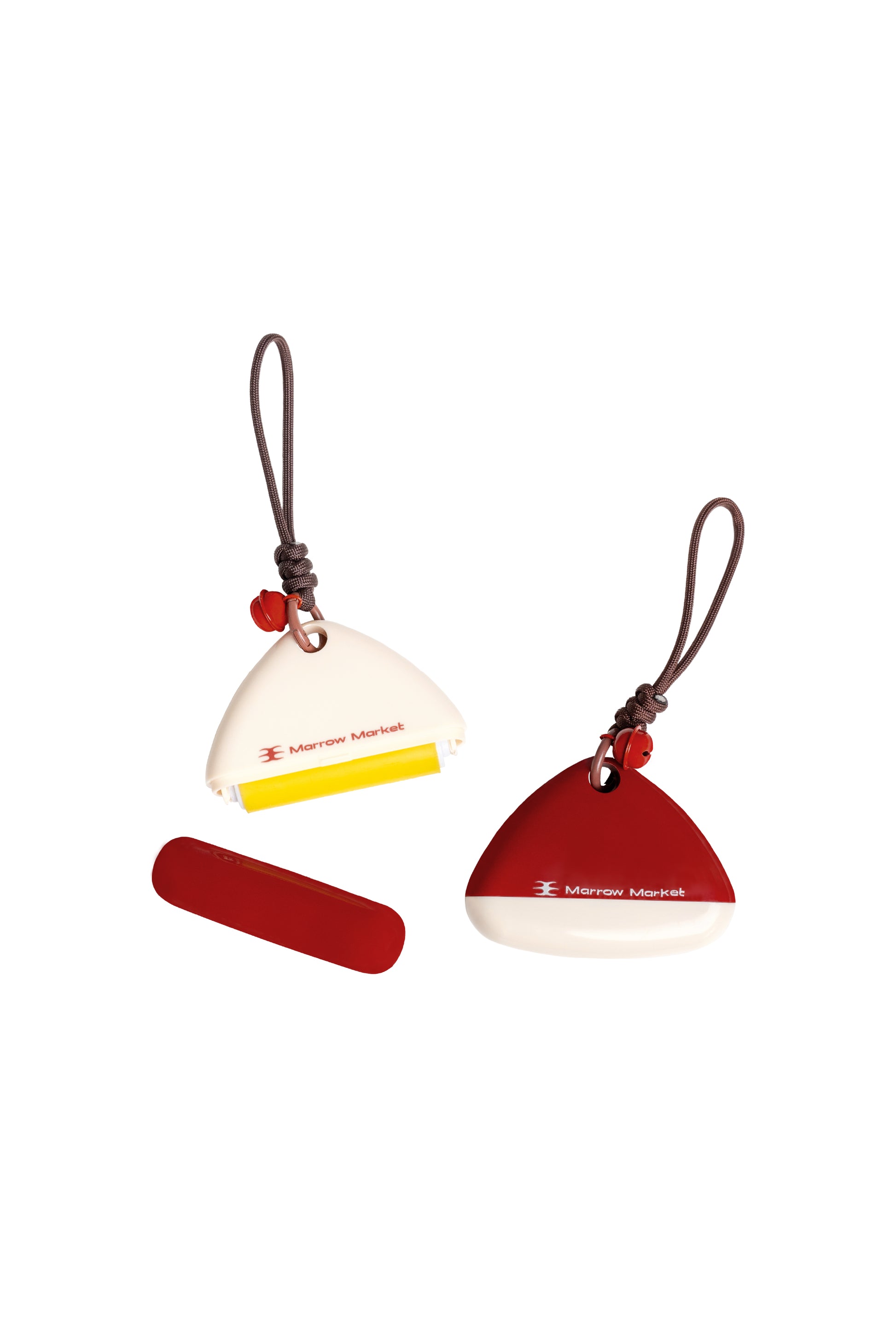 Each roller comes adorned with a hanging string and a red ring bell charm.